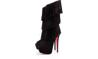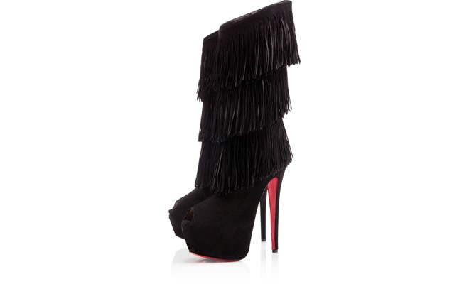 Christian Louboutin celebrates 20 years of iconic designs with a capsule collection compiled from our favorite pieces from decades past. Once upon a time "Forever Tina" met "Highness." The result: this exceptional fringed peep-toe boot.