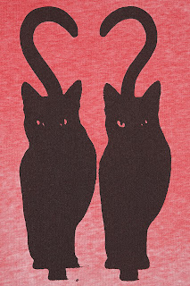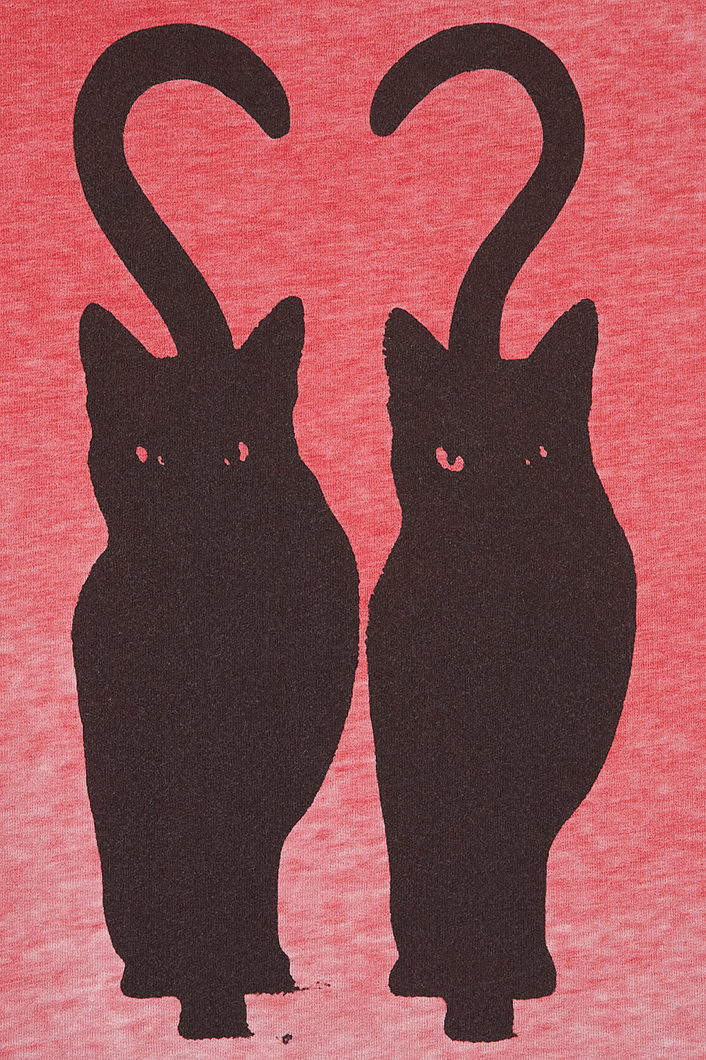 Red burnout sweat with twin cat motif. 57% Polyester,43% Cotton. Machine washable.