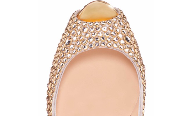 As if "Lady Peep 150 Strass" wasn't perfect enough please put your hands together and welcome the "Lady Peep 150 Ring Strass". These new Louboutin crystals that are ringed with gold and placed by hand are certain to take your breath away. These luxurious shoes represent jewelery at it's finest level.
